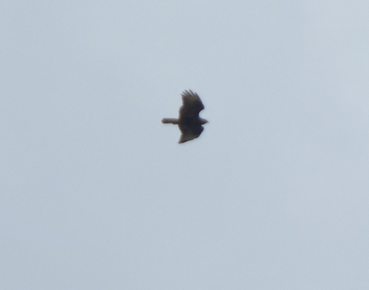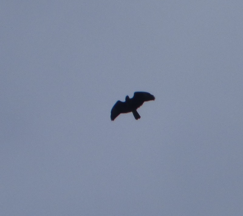 2/9: a male floating over Warden Hill at 11:41, before gliding S (lower South Tyne) 5/9: a female soaring into base of clouds over Scotswood and moving S at 12:27 (Tyne Valley E) 15/9: a juvenile flapping W over Slaley Forest at 16:43 into a squall (Devil's Water) 17/9: star action was at 16:45 as picked up a juvenile Honey-buzzard at great height moving slowly S over Parson Shields; suspected it was a migrant, looking for a place to spend the night. It moved slightly lower, joined by a second Honey-buzzard juvenile, and was greeted by a reception committee: a juvenile female Hobby which proceeded to mob them. The 2 Honey-buzzard decided to move a little further S and disappeared to sight over Williamston S, using orographic (ridge) lift to glide effortlessly, but losing height all the time. (upper South Tyne) 21/9: at Slaley Forest Dukesfield, a juvenile moving S at 11:51, soaring high, mobbed by Corvids and 2 Black Kite juvenile (the Black Kite escorting the Honey-buzzard out) (Devil's Water) 22/9: A Honey-buzzard juvenile took off from trees at Dukesfield and after a lot of floating around moved to Slaley W, where it soared with the local juvenile Black Kite juvenile and briefly with 2 Red Kite juvenile as well at 16:13-16:23. The Honey-buzzard disappeared to sight to the SE continuing its migration (15190) but the Black Kite came back. (Devil's Water) 28/9: at Slaley W, a paleish juvenile Honey-buzzard was soaring at 12:32, clearly a migrant and departing S, escorted initially by a Black Kite juvenile. This Black Kite seems to regard it as its duty to escort every migrating Honey-buzzard out of its area so when another darker Honey-buzzard juvenile appeared soaring at 12:36, it transferred its attention to this one, soaring quite high above it at times. (Devil's Water) 2/10: at Slaley W, had a very slim Honey-buzzard juvenile soaring from 13:40-13:43, going very high, and moving off S. It was inevitably attended at lower levels by the Black Kite juvenile. (Devil's Water) 5/10: Had a rufous-phase juvenile Honey-buzzard up at moderate height at 14:24 mobbed by 2 Crow just SE of Stocksfield (Tyne Valley W).