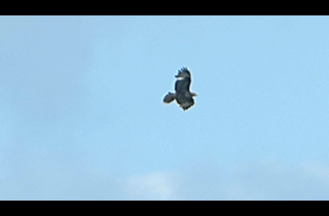 Play many more Videos Clip 1201 with derived stills 1 2 3 4 5 6 7 8, juvenile mobbed by 3 Hooded Crow, The Raven, Co Wexford, 7 Nov 2013 Clip 4003 (Farnley, Northumberland, 2 May 2014, pair in territory): 2 with derived stills 1 2 3 4 5 6 7 8 9 10 11 12 13 14 15 16 17 18, showing male (damaged inner primary on right wing, missing inner primary on left wing) in extensive gliding around in territory, with effortless rearing up and strength in the air, the female does some mutual circling near the end (more on Videos page). Clip 4007 (Staward S, Northumberland, 14 May 2014, male overhead): 1 with derived stills 1 2 3 4 5 6 7 8 9 and stills taken during videoing 10 11 12 13 14 15. Think he's been back a while and is a little lovesick for his mate, of whom no sign. Had some interesting calls as he appeared overhead: mating call of the Honey-buzzard (really!!) with real jungle overtones, but he's not apparently got a mate yet, wonder if it came from pair at Staward N, if so means both birds back here now. Here's the extracted audio clip 1: the mating (wailing) call of the Honey-buzzard. Clip 4040 (Wylam, Northumberland, 6 June 2014, male overhead): 1 with derived stills 1 2 3 4 5 6 7 8 9 10 11 12 and stills taken during the videoing 1 2 3 4 5 6 7 8 9 10 11 12 13. Clip 4060 (Eals, Northumberland, 5 September 2014) 1 with derived stills 1 2 3 4 5 6 7 8 9 10 11 12 13 14 15, showing the pair in full display and recording the calls of the Jay and juvenile Honey-buzzard, and 2nd clip 2 with derived stills 1 2 3 4 5 6 7 8 9 10 11 12 13 14 15 showing the male up on his own. See a lot more Stills