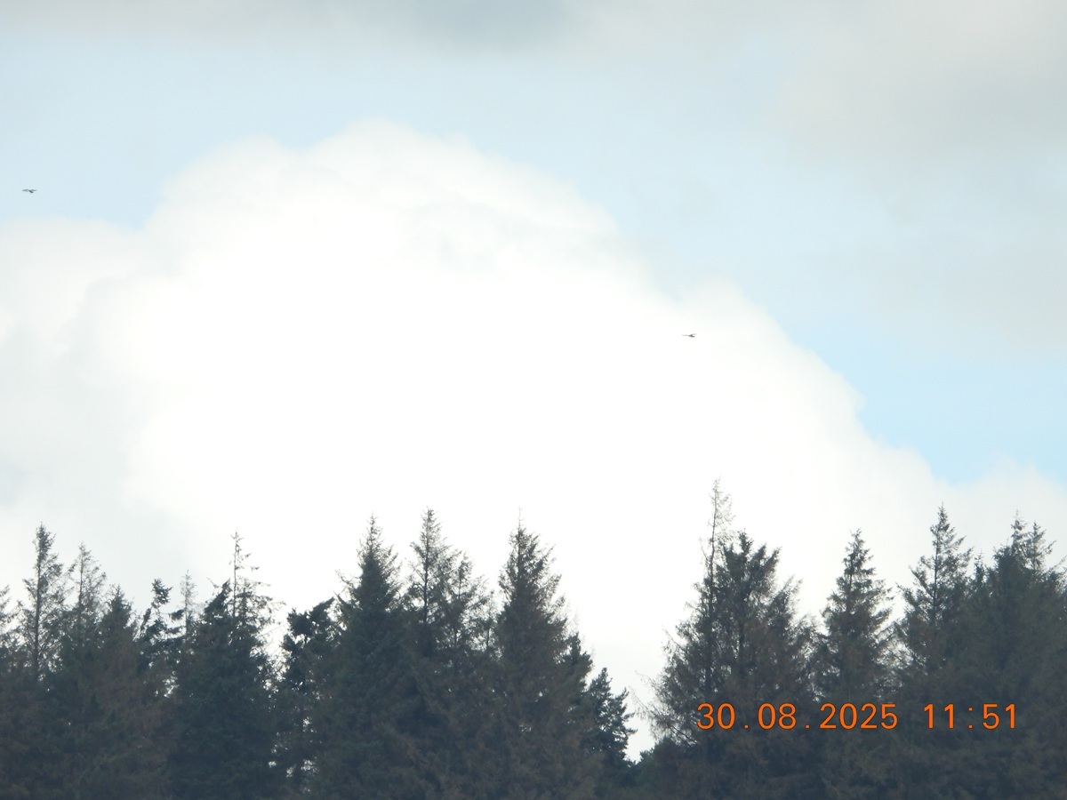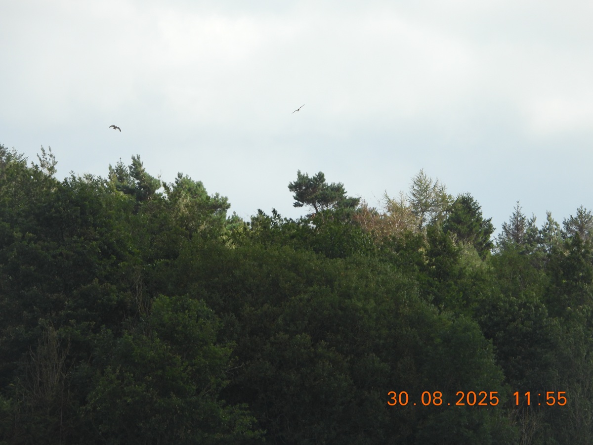 17/09/25: close of season: provisional final totals: Honey-buzzard: 30 sites, 22 male, 12 female, 44+ (15x2, 11x1+, 3x>0) juvenile fledged at 29 sites; juveniles exiting. Black Kite: 28 sites, 41 adult, fledging noted at 26 sites, 48+ (3x3, 16x2, 6x1+, 1x1) juvenile fledged; at least one juvenile still on site. Osprey: have left nest sites. Hobby: 5 sites, 1 adult male, 2 adult female, 4 (1x2, 2x1+) juveniles fledged at 3 sites; most juveniles have left. Red Kite: fledging noted at 8 sites, excluding Derwent.